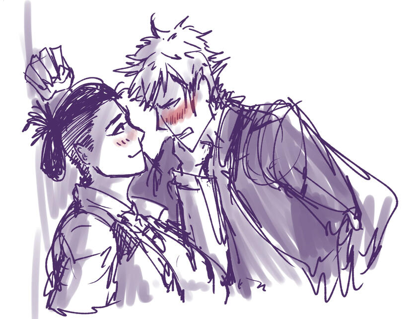 I archive most of my work (written, drawn, or both) on Tumblr, but Twitter gets more of the unhinged gushing and sketchy one-off doodles. You can check the art archive here, and a collection of comics, fic, and stories that sit somewhere in between here.